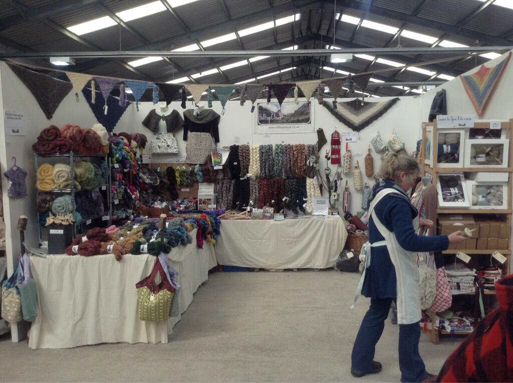 This year, much better. There's probably not a great deal more stock, but it looks much fuller. Mostly because of the samples. When I look at my Ravelry project page for the last year it seems rather empty in comparison to past years, but in reality I've made a huge number of samples for workshops and on the stand. They really help people understand how things look when spun, and fill up that empty wall space.